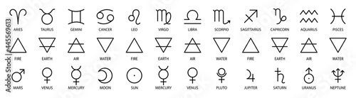 Wall mural zodiac sign, element and symbols of the planet. vector astrological calendar table. horoscope. aquar - Wall murals Wall mural zodiac sign, element and symbols of the planet. vector astrological calendar table. horoscope. aquar - Wall murals